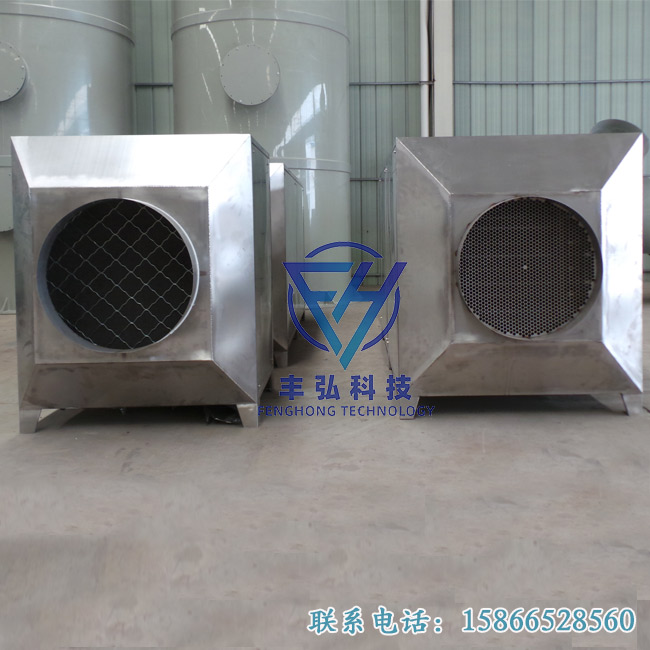 綜合處理系統(tǒng)主要有柱狀活性炭層和承托層等組成,保證炭層具有適宜的孔隙率,減少氣體通過的阻力;比表面積大,具有很高的吸附能力,從而達到凈化廢氣的目的。